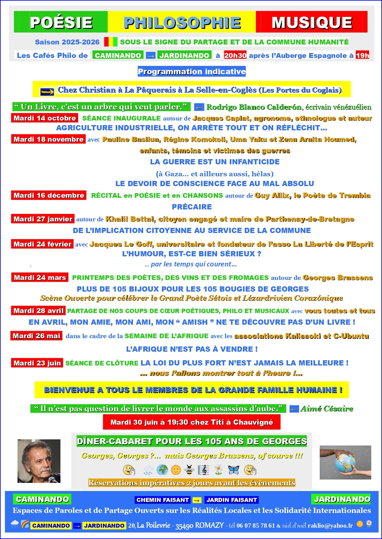 La Vie est précieuse et n’est pas qu’économique; alors si nous la voulons belle et digne pour les filles et les fils de la Terre, nous devrions, ensemble, unir nos bonnes volontés pour partager nos connaissances, nos pratiques culturelles, sociales et solidaires.