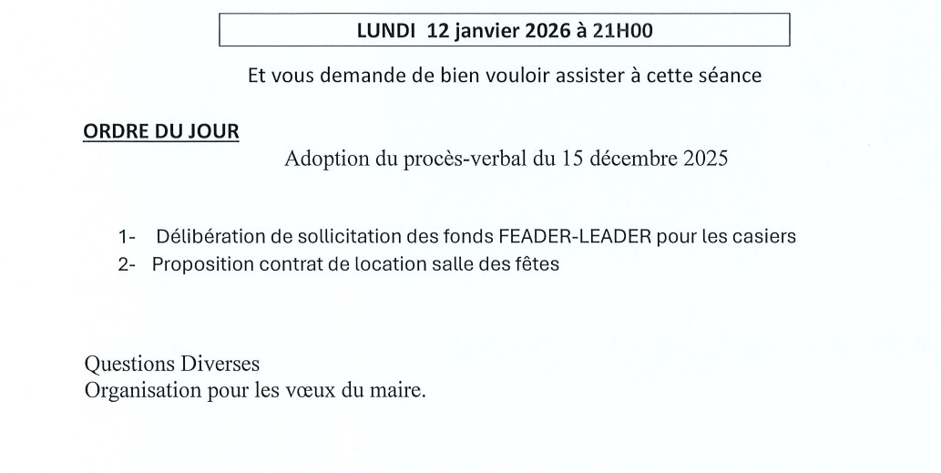 Conseil municipal du lundi 12 janvier  2026 à 21h00
