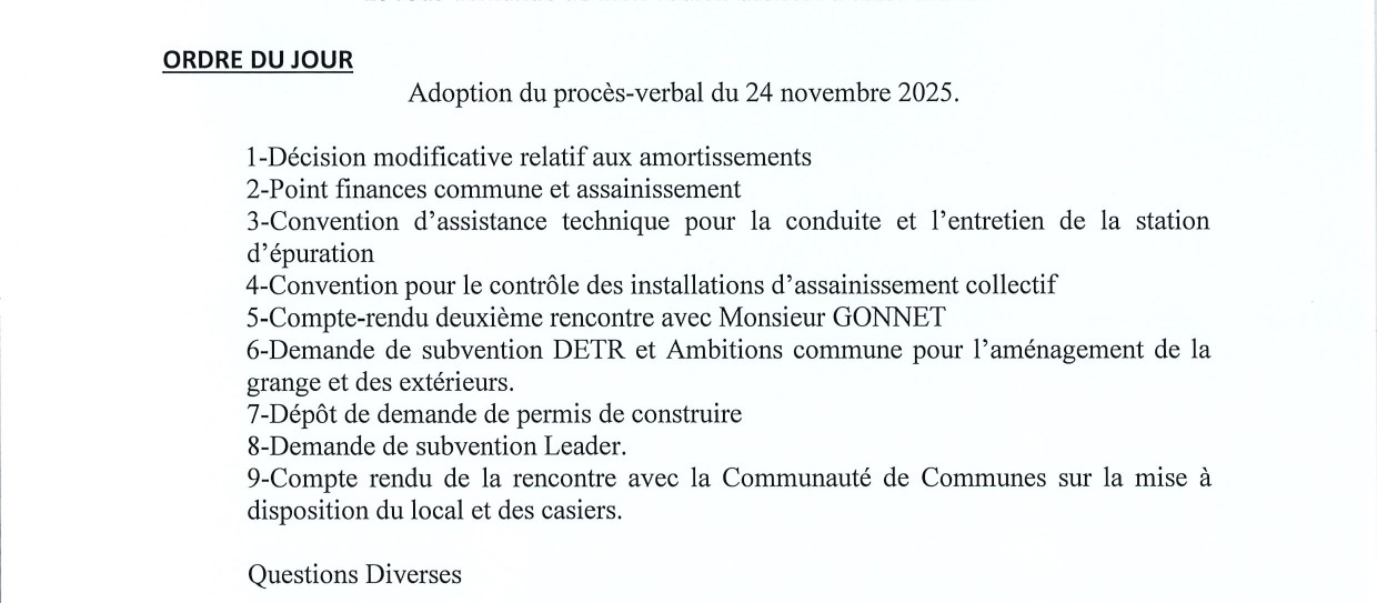 Conseil municipal du lundi 15 décembre  2025 à 21h00