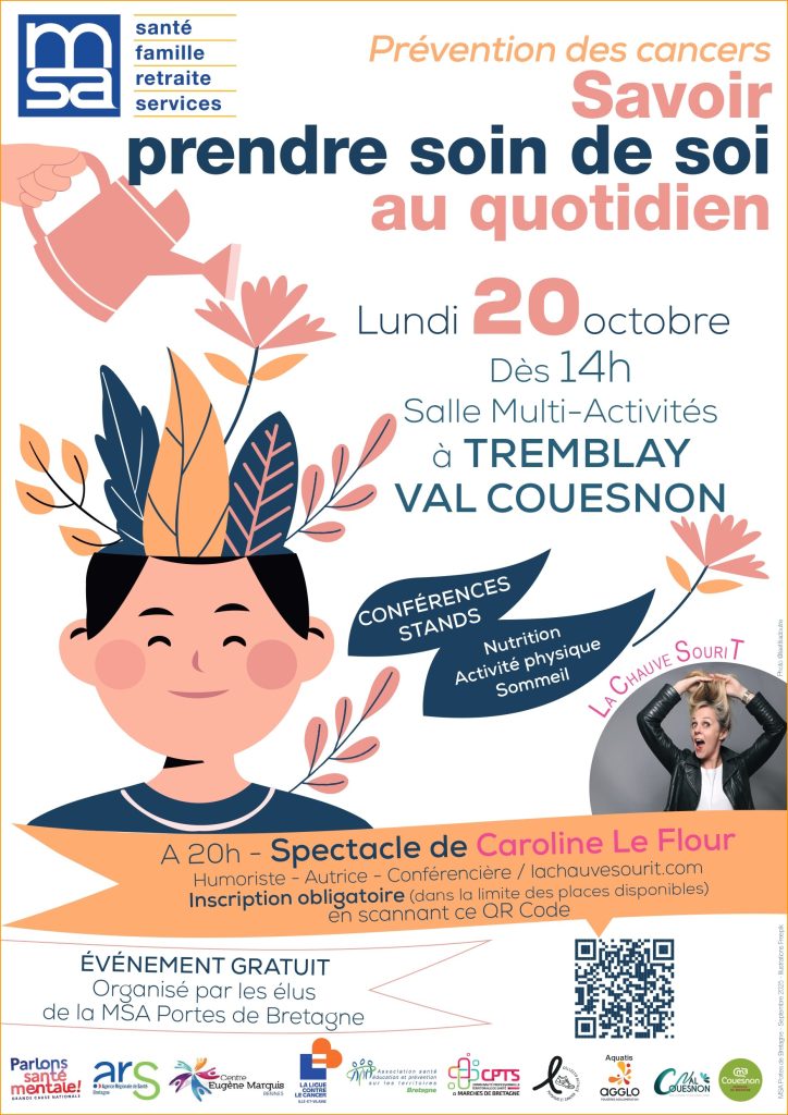 A 20h : Spectacle de Caroline Le Flour, humoriste, autrice et conférencière. Elle est autrice et interprète du one woman show La Chauve SouriT, au travers duquel elle raconte avec désinvolture son combat contre le cancer.